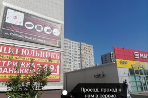 Сервисный центр расположен рядом с салоном красоты "Цирюльник" и службой доставок"Ozon"